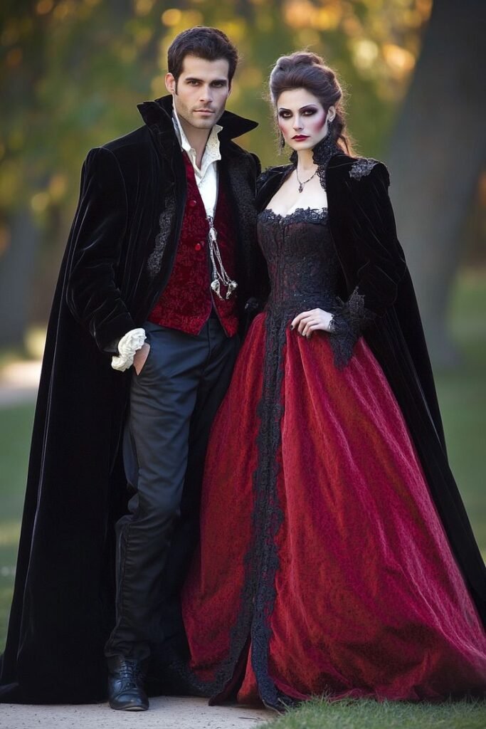 Vampires are a Halloween staple, but when done right, they’re incredibly stylish and dramatic. Go for a traditional Victorian look with velvet cloaks, high collars, and elegant lace. Add a touch of fake blood at the corners of your mouth for a spooky twist.