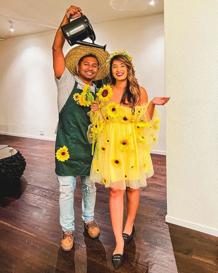 Dress one partner as a dark thundercloud with gray tones, cotton stuffing, and maybe even LED lights for added sparkle. The other goes as a bolt of lightning with metallic gold or yellow fabric, jagged edges, and high-energy makeup.