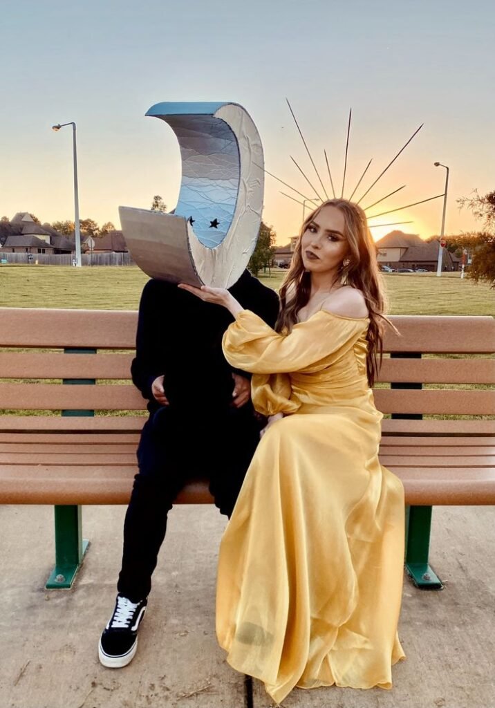 Dress as the sun with bold yellows, oranges, and glittering rays. The moon can go silver, white, and serene with craters, stars, or even a soft glow. This costume lets you play with fabrics, headpieces, and makeup in a really creative way.
