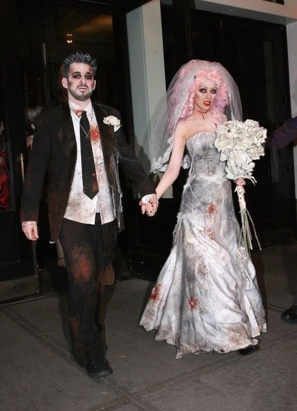 This costume is simple: start with old wedding attire (or pick up secondhand pieces), distress them with fake blood, dirt, and tears, then go wild with ghostly makeup. Add pale contact lenses and blood-drip accessories for maximum effect.