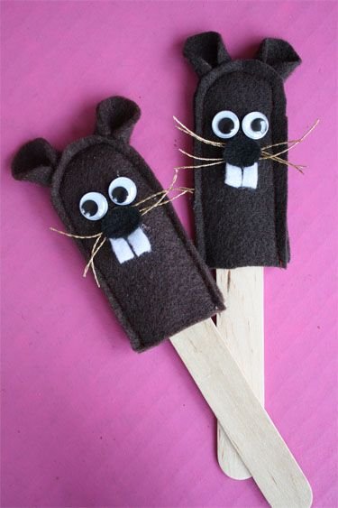 In this fun and simple craft, kids use popsicle sticks to create the body of the groundhog. Glue a few together side by side for the base, then add construction paper for ears, eyes, a nose, and those classic front teeth.